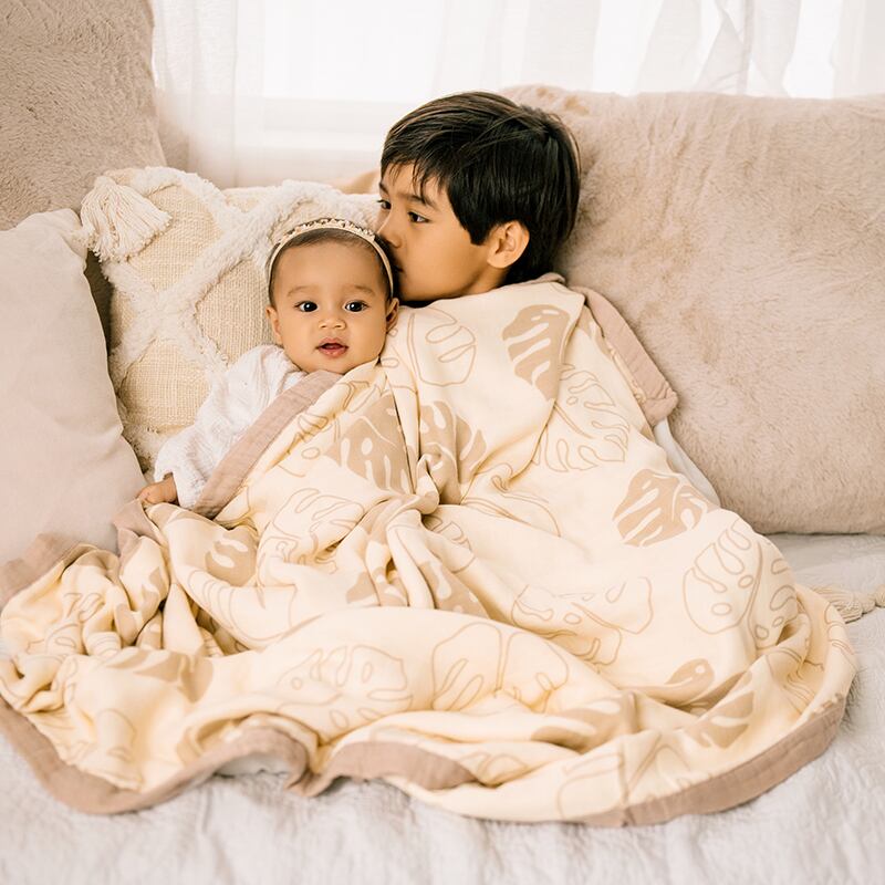 バンブーモスリンを8枚重ねて作られたベビーブランケットは、肌寒さからベビーを守ってくれる最適なアイテムです。
