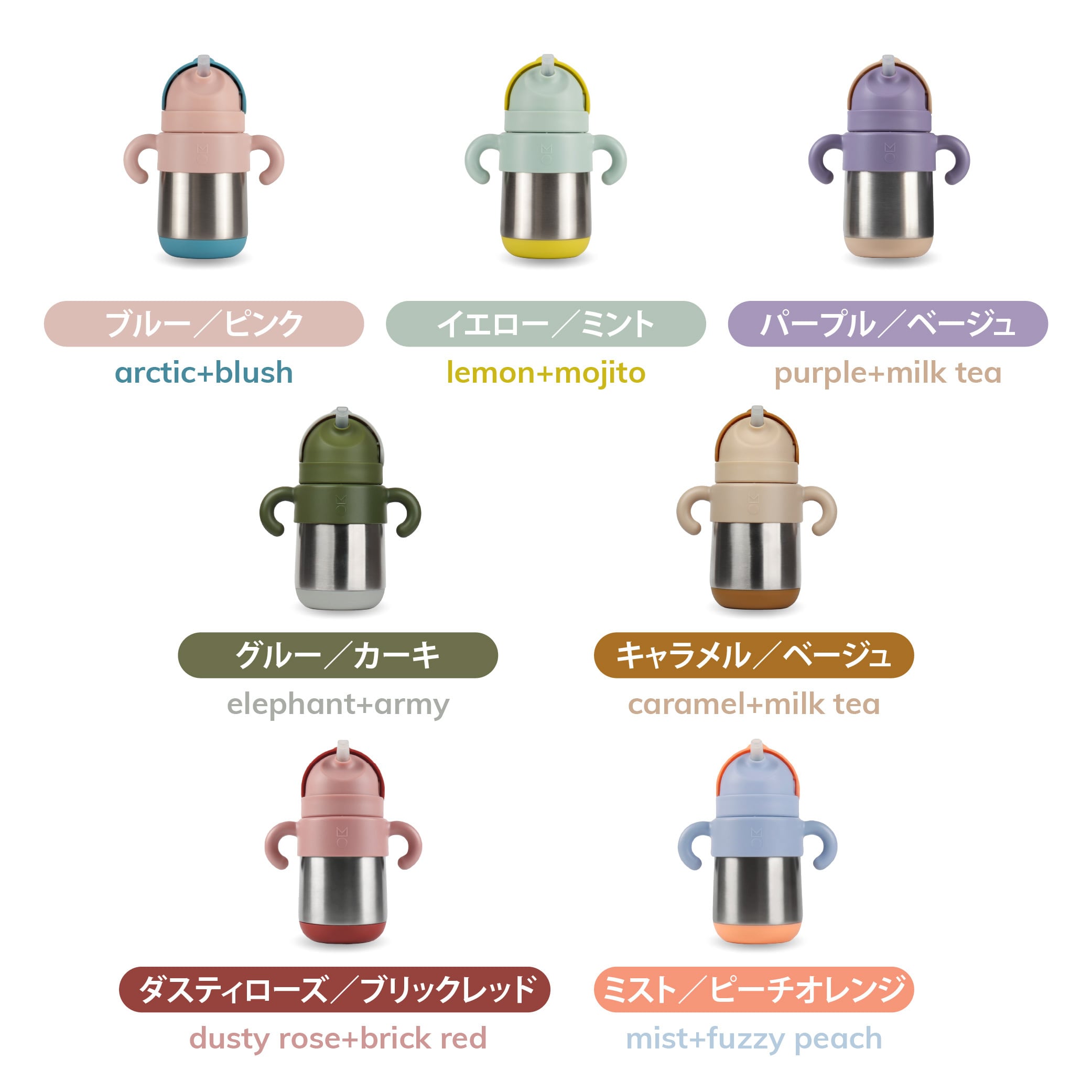 また、小さい頃はハンドルを付けてストローマグとして、大きくなってからはハンドルを外してウォーターボトルとして、成長に合わせて使うことができます。