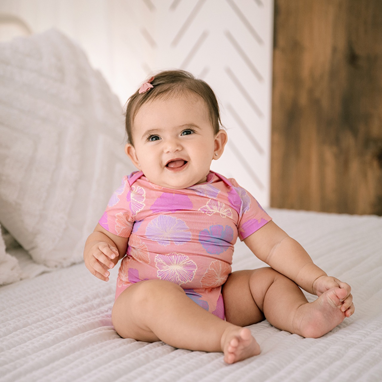 ハワイ生まれのライフスタイルブランド「Coco Moon(ココムーン)」のしっとりした肌触りで、伸縮性が優れたロンパースに「seaflower」柄が仲間入り☆