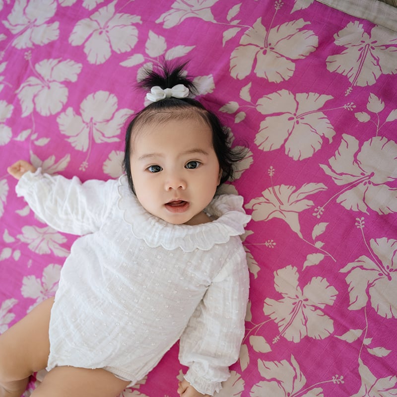 Coco Moonのアロハ気分で包まれるHawaiian baby blanketを持ってお出かけするのはいかがですか?