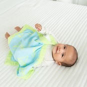 素材はバンブーとコットンから作られたレーヨン100%。シルクのように肌触りがよくやわらかく、吸収性・通気性に優れています。夏は涼しく、冬はムレを防ぎ最適な湿度に保つことができ、一年通して赤ちゃんを快適な状態に保ちます。
